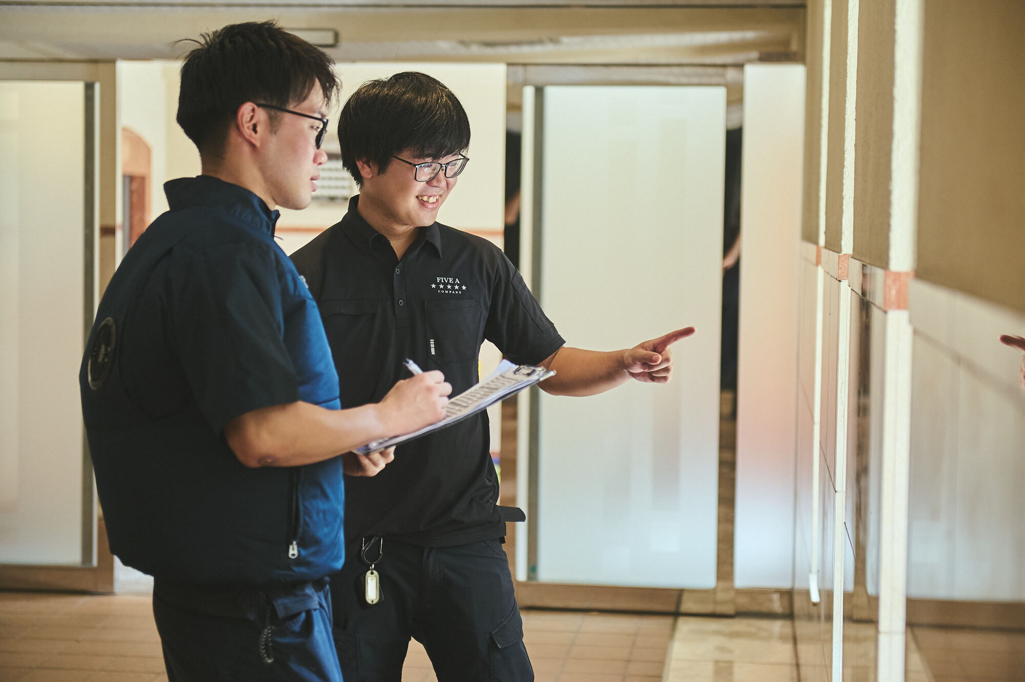 作業に必要な道具を準備し、利用者様への注意喚起もしっかり行います
